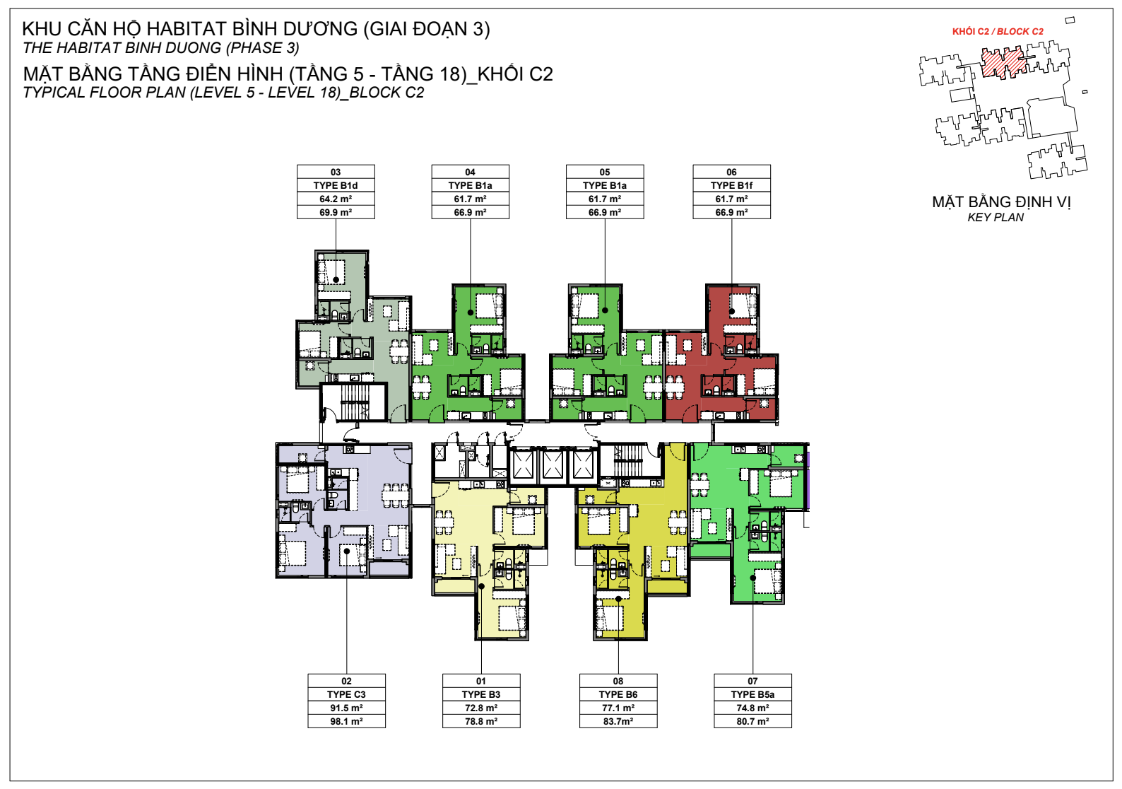 • Thiết kế chung (61.7 m² – 64.2 m²): Thiết kế tối ưu cho các chuyên gia.